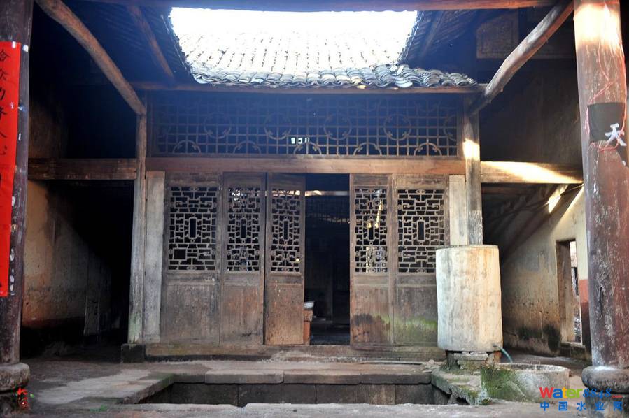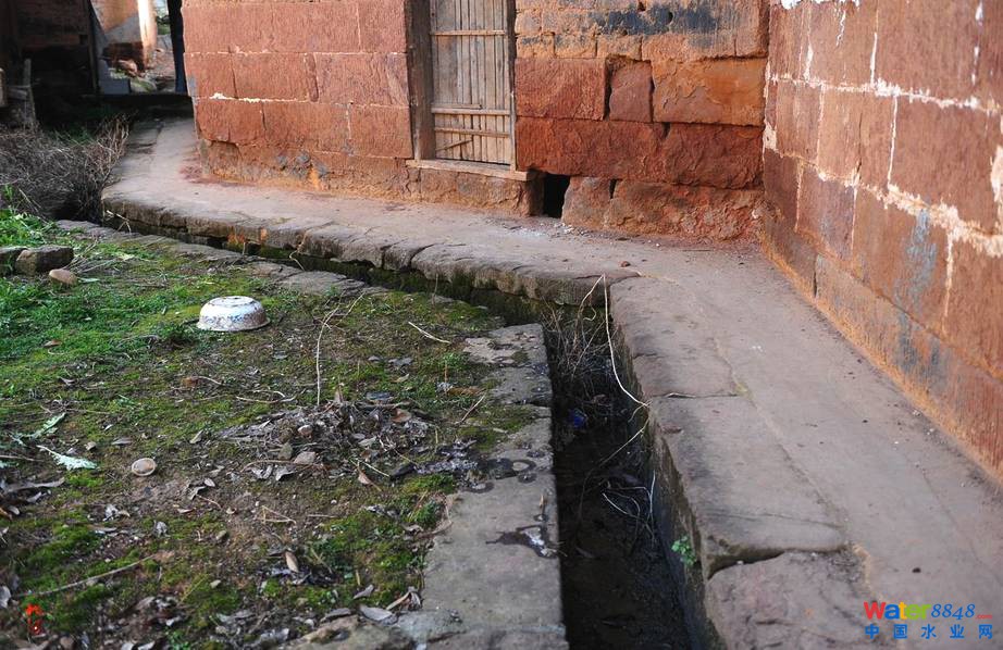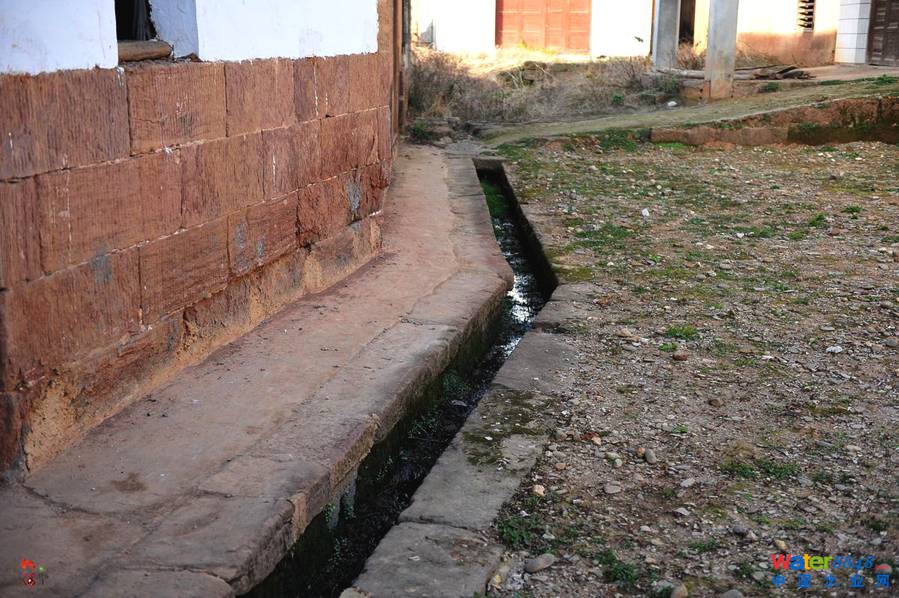 正屋外的院子里,沿著房屋開有多條曲折的水溝,均用石塊砌成,正廳水池和院子里的水可通過這里全部排到院外。