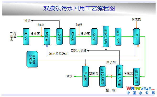 在污水處理廠污水深度處理改造中采用“雙膜法”(CMF+RO工藝)污水深度處理回用工藝,實(shí)現(xiàn)了膜技術(shù)大規(guī)模工程化應(yīng)用、技術(shù)集成及國(guó)產(chǎn)化,用國(guó)產(chǎn)“雙膜法”(CMF+RO)工藝和設(shè)備應(yīng)用于城市污水再生處理。徹底突破了國(guó)內(nèi)污水深度處理“老三段”(混凝、沉淀、過(guò)濾)的傳統(tǒng)觀念,建立起“雙膜法”、“污水脫鹽”新概念,使我國(guó)污水資源化技術(shù)水平、產(chǎn)業(yè)水平實(shí)現(xiàn)新跨越,引起社會(huì)的極大關(guān)注。