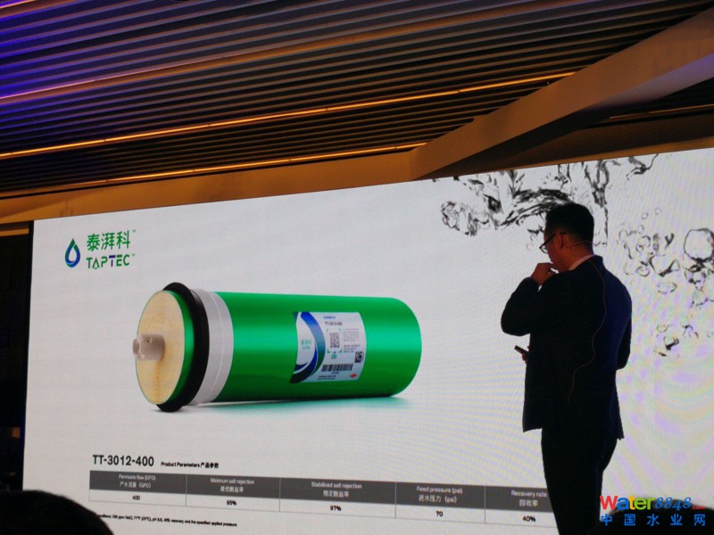 此次新品發(fā)布會上,陶氏發(fā)布了兩款泰湃科TM(TAPTECTM)產品:泰湃科TM家用50加侖反滲透膜元件TT-1812-50及泰湃科TM家用400加侖無罐型反滲透膜元件TT-3012-400。這兩款新品采用成熟技術,持久耐用,性能比肩陶氏FILMTEC™系列產品。