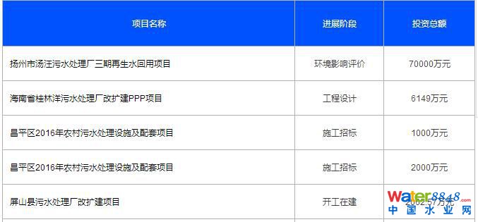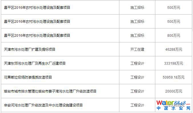 設(shè)計院項目匯總|2016年四季度中國市政工程華北設(shè)計院項目 包括揚(yáng)州市湯汪污水處理廠三期再生水回用項目、海南省桂林洋污水處理廠改擴(kuò)建PPP項目、昌平區(qū)2016年農(nóng)村污水處理設(shè)施及配套項目等