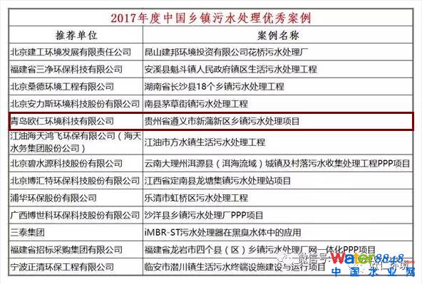祝賀 歐仁環(huán)境公司入選2017年度中國鄉(xiāng)鎮(zhèn)污水處理優(yōu)秀案例