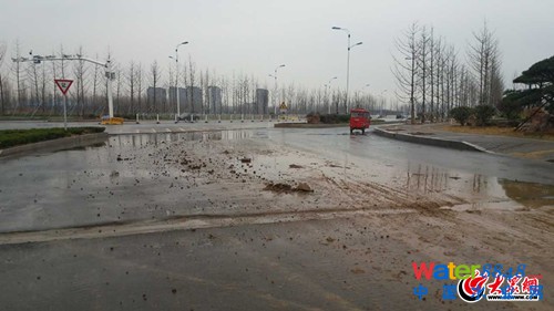 長沙路西段一處工地出入口污泥遍地污水橫流