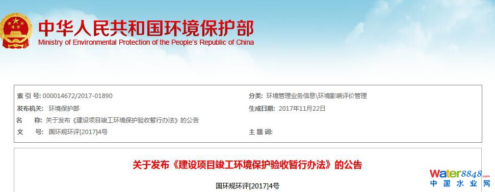環(huán)保部:關于發(fā)布《建設項目竣工環(huán)境保護驗收暫行辦法》的公告