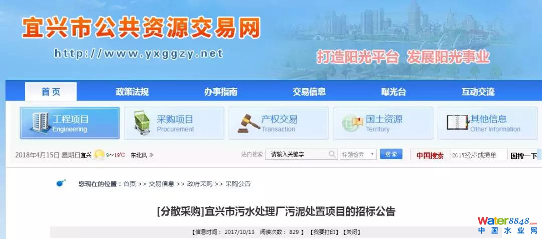 江蘇省宜興市污水處理廠污泥處置項目于2017年10月公開招標,江蘇國信協(xié)聯(lián)能源有限公司以200元/噸的價格獨攬兩個標段。該項目基本情況及最新進展如何?