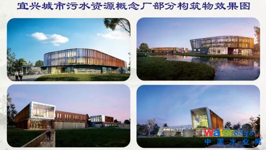 宜興城市污水資源概念廠占地面積120.5畝,位于宜興環(huán)保大道與科技大道交叉口的西北角,主要包括水凈化單元、生物質(zhì)處理中心、未來中心、創(chuàng)新中心及裝備制造中心,設(shè)計(jì)日處理污水2萬噸,日處理污泥和有機(jī)垃圾各25噸(80%含水率)。