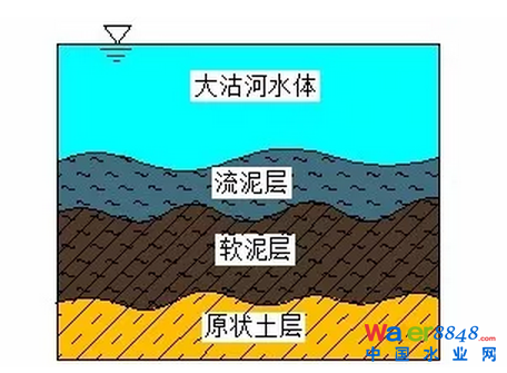 嚴(yán)重污染層分層按照含水率的不同可以從表征上分為三個亞層:最上層為水溶膠亞層,該層為固液相的過渡帶,含水率在98%以上,厚度在20-80cm之間,整體上隨著水深的變化而變化,該層與水層存在明顯的重疊,隨著水體的受擾動程度不同而發(fā)生變化;中間為黑色絮凝亞層,該層位于水溶膠亞層以下,為厚重黑色絮狀層,其厚度在20-60cm之間,平均含水率在90%左右;最下層為黑色粘土亞層,該層平均含水量85%左右,厚度在0.3-1.2m之間,以黑色黏土、粉砂及細(xì)砂沉積物為主;三個亞層中前兩層具有一定的流動性,在擾動較大的情況下,可以隨著水流進(jìn)行遷移 ,容易向上擾動進(jìn)入上層水體。