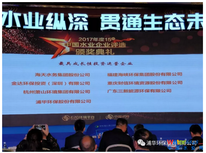 浦華環(huán)保股份有限公司憑借強大的核心技術(shù)優(yōu)勢、專業(yè)的運營發(fā)展能力和優(yōu)秀的市場業(yè)績表現(xiàn),獲得“2017年度中國水業(yè)最具成長性投資運營企業(yè)”稱號。