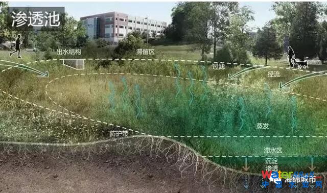 雨水調(diào)蓄池的形式多樣,可以是小區(qū)內(nèi)的雨水花園,也可以是城市中的口袋綠地,在有效利用了天然綠地或濕地及水生和濕生植物群落基礎(chǔ)上,大大小小的調(diào)蓄池成為了水質(zhì)凈化-蓄滯水-地下水回補(bǔ)多級(jí)多功能濕地系統(tǒng)中的核心環(huán)節(jié),同時(shí)成為地下水回補(bǔ)的前提條件。