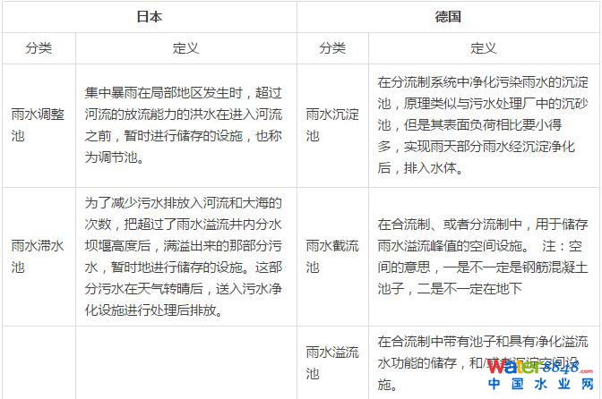 讓我們先來看國際上雨水管理技術(shù)較為先進(jìn)的德國和日本是如何對(duì)雨水調(diào)蓄池進(jìn)行分類和定義的: