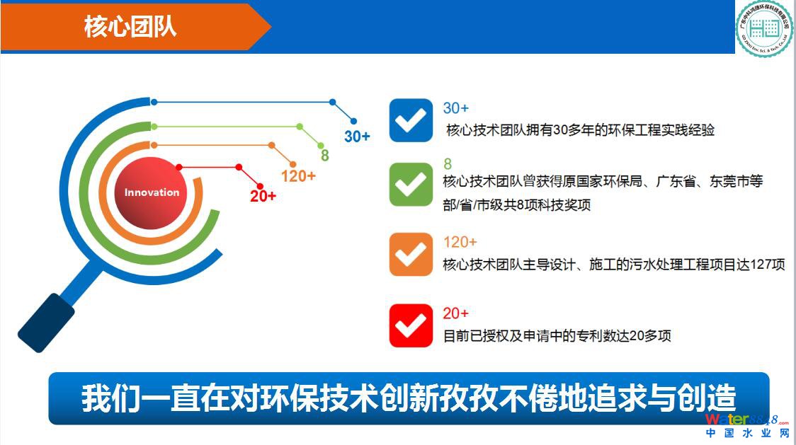 廣東中科鴻捷環(huán)?萍加邢薰荆ê喎Q中科鴻捷)是一家以科技創(chuàng)新為企業(yè)核心價(jià)值觀,以水生態(tài)環(huán)境治理及智能化環(huán)保裝備研發(fā)為主營業(yè)務(wù)的科技型企業(yè),是中國科學(xué)院云計(jì)算中心國家級(jí)孵化器孵化培育的高科技企業(yè),依托中國科學(xué)院的科研技術(shù)實(shí)力和人才優(yōu)勢,致力發(fā)展國際領(lǐng)先的高端智能環(huán)保技術(shù)裝備。中科鴻捷擁有一支具有豐富環(huán)?萍佳邪l(fā)與工程實(shí)踐經(jīng)驗(yàn)的高端人才研發(fā)隊(duì)伍,團(tuán)隊(duì)核心技術(shù)帶頭人徐宏康總工程師是中國水污染治理技術(shù)裝備專家團(tuán)技術(shù)專家、東莞市專業(yè)技術(shù)拔尖人才、中國科學(xué)院云計(jì)算中心特聘專家、廣東省科技咨詢專家?guī)鞂<,其主持及參與的環(huán)?萍柬(xiàng)目曾榮獲原國家環(huán)保局(部級(jí))、原廣東省高教局(廳級(jí))、東莞市等科技獎(jiǎng)多項(xiàng)。中科鴻捷自主研發(fā)的無沉淀池式高效深層精密直濾水處理設(shè)備——智濾®池,是全球首個(gè)可對(duì)高濁度水無需前置沉淀池工藝而直接進(jìn)行高效深層精密直濾設(shè)備,具有精密直濾速度快、濾后水質(zhì)好、濾材耐用且不易堵塞、反沖洗效果好、占地面積小、投資及運(yùn)維成本低、自動(dòng)化控制程度高等優(yōu)點(diǎn),廣泛適用于各類大中小規(guī)模的市政污水、工業(yè)廢水、市政給水的固液分離過濾處理。