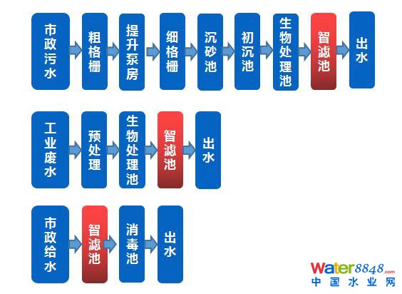 智濾池應(yīng)用工藝流程