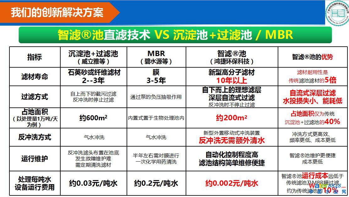直接代替沉淀池+過濾池 | 水重力自流式0耗電過濾 | 噸水處理成本不到1分錢 | 濾材保用10年