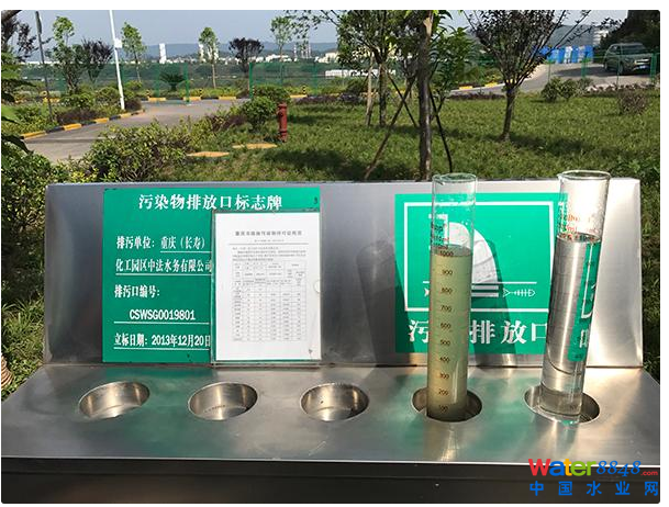 中法水務(wù)污水排口標(biāo)志牌前處理前后水樣對比。