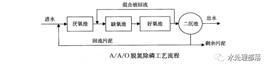 為了達到同時脫氨除磷的目的,在Ap/O工藝中增設(shè)缺氧區(qū),構(gòu)造了厭氧/缺氧/好氧(A/A/O) 工藝。