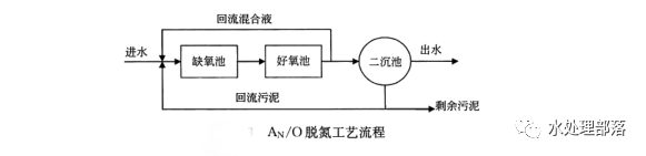 AN/O (Anoxic/Oxic) 工藝是一種有回流的前置反硝化生物脫氮流程,其中前置反硝化在缺氧池中進行,硝化在好氧池中進行。