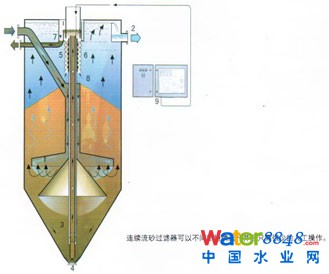水的凈化與砂的清洗同時進(jìn)行,因而過濾器可以不受干擾地連續(xù)進(jìn)行。