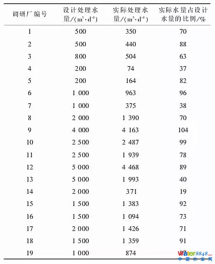巢湖流域現(xiàn)有村鎮(zhèn)污水處理廠處理能力調(diào)研結(jié)果