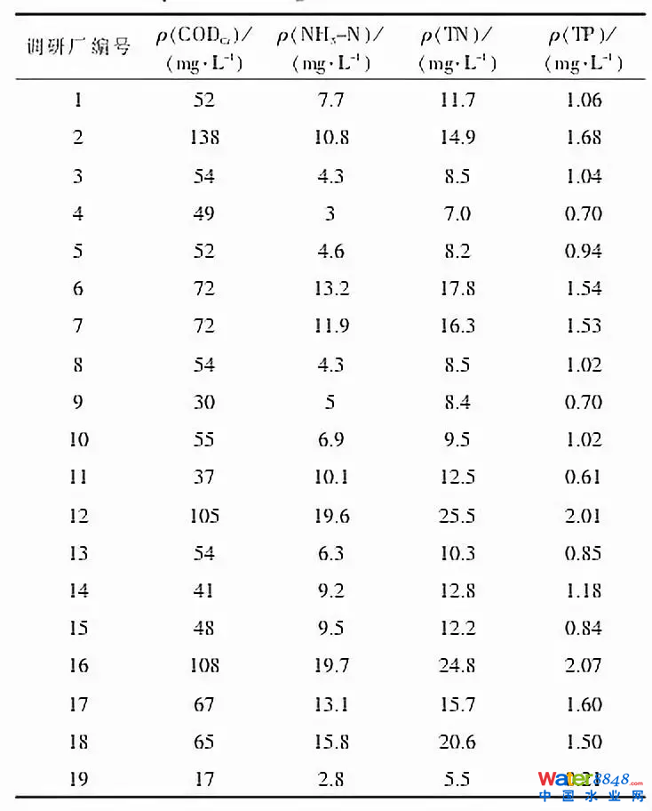 對(duì)巢湖流域已建成運(yùn)行的村鎮(zhèn)污水處理廠進(jìn)水水量和水質(zhì)進(jìn)行調(diào)研,調(diào)研結(jié)果如表所示: