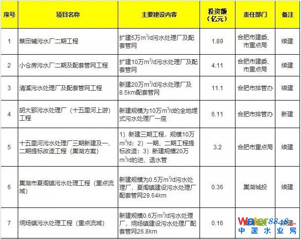 表1 合肥市“十三五”城鎮(zhèn)生活污水處理工程