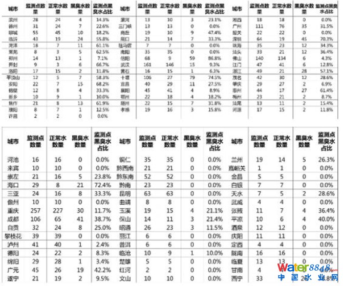 全國城市“水質(zhì)地圖”出爐:工業(yè)城市黑臭水普遍分布較多