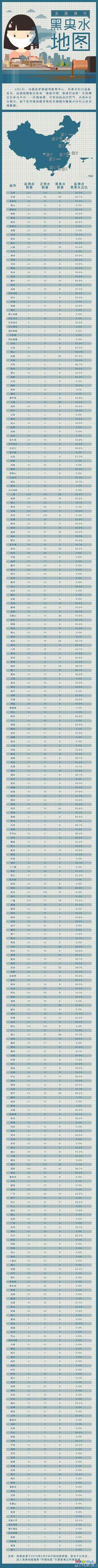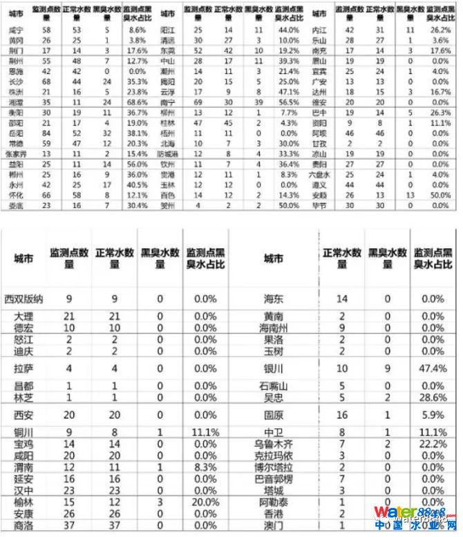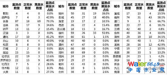 全國城市"水質(zhì)地圖"出爐:一線城市黑臭水問題突出