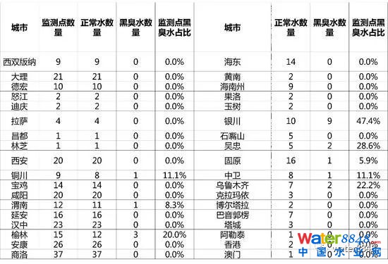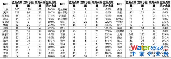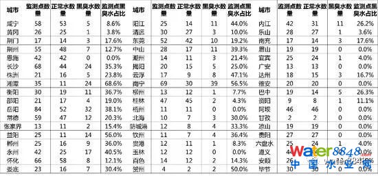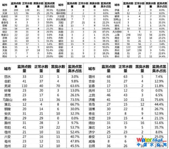 全國城市水質(zhì)地圖出爐:一線城市黑臭水問題突出