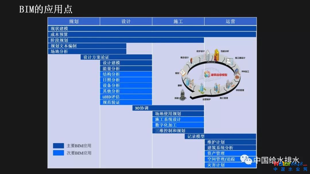 基于BIM技術(shù)的水廠智慧化構(gòu)建與運行 上海市政工程設計研究總院(集團)有限公司王如華副總工程師按照工程建設階段簡述了BIM在智慧水廠中的應用