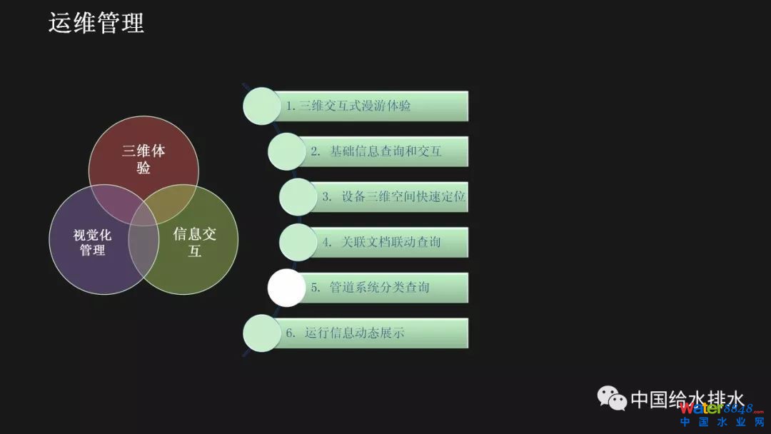 運營階段則是工程實體發(fā)揮功能和全生命周期中最長的階段,這個階段的管理工作同樣非常重要。BIM服務于運維,已經(jīng)發(fā)展成為一個相對獨立的研究方向,BIM和設施管理相結(jié)合的研究越來越受到關(guān)注,這也正是智慧水務建設的一個重要方面,即對供水設施的運營進行科學化的管理。