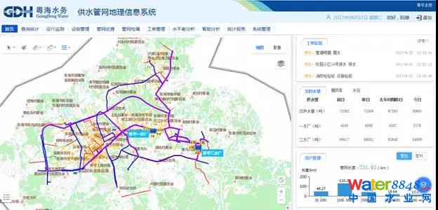 瀚藍環(huán)境已建成的供水相關信息系統(tǒng)有:OA、騰訊通RTX、瀚藍+、營業(yè)收費系統(tǒng)、供水GIS、供水SCADA系統(tǒng)、供水熱線系統(tǒng)、供水微觀模型系統(tǒng)和支付寶、微信公眾號服務繳費等。通過對供水管網(wǎng)運營的管理制度和流程進行適應性的調整和設置,將供水管網(wǎng)的業(yè)務運營(如停水管理、調度規(guī)劃、巡檢報修、客戶服務、移動辦公等)與已有的信息系統(tǒng)集成和串聯(lián)起來,在信息系統(tǒng)建設投入未大規(guī)模增加的前提下,減輕了企業(yè)員工的勞動強度,提高了運營效率和勞動生產(chǎn)率。智慧水務系統(tǒng)應用的結果覆蓋了佛山市南海區(qū)1073.82平方公里的范圍,服務人口約300萬,獲得較好的經(jīng)濟效益和社會效益。
