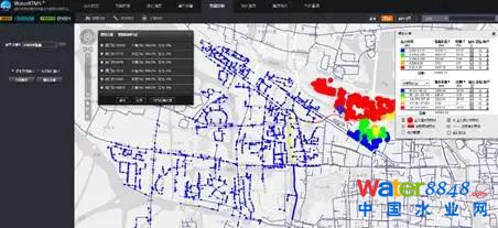 (4)有助于新裝管道精確接水。在新裝管道時,管網(wǎng)GIS系統(tǒng)提供直觀的管網(wǎng)分布情況,并利用水力計算模型精確的計算出接水所需管徑與管道走向,從而降低了接水費用,綜合統(tǒng)計每年可節(jié)約生產(chǎn)成本50萬元/年。