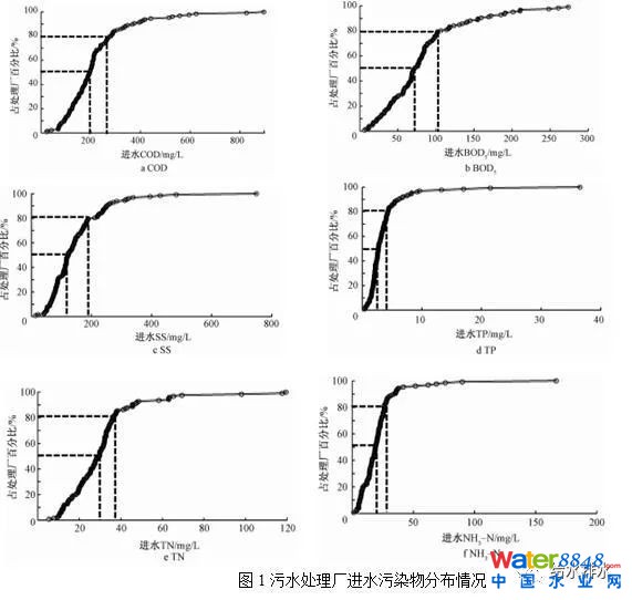 現(xiàn)階段,污水處理系統(tǒng)能耗較大、運行費用偏高,污水處理的建設(shè)及后續(xù)提標改造工程往往都忽略進水水質(zhì)構(gòu)成及其變化,導(dǎo)致后期工藝運行調(diào)整難、運行能耗高,影響出水穩(wěn)定達標。選取全國127座城市污水處理廠,系統(tǒng)分析了其進水水質(zhì)特征以及有機物、氮、磷和懸浮物之間的概率分布和相關(guān)關(guān)系。