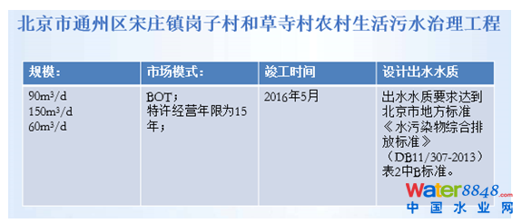 最后,繆靜介紹了北京市通州區(qū)宋莊鎮(zhèn)崗子村和草寺村農(nóng)村生活污水治理工程、北京市門頭溝區(qū)農(nóng)村生活污水處理試點示范工程(PPP項目)、北京市通州區(qū)馬駒橋鎮(zhèn)過渡性污水處理站(BOT項目)等工程應(yīng)用案例。