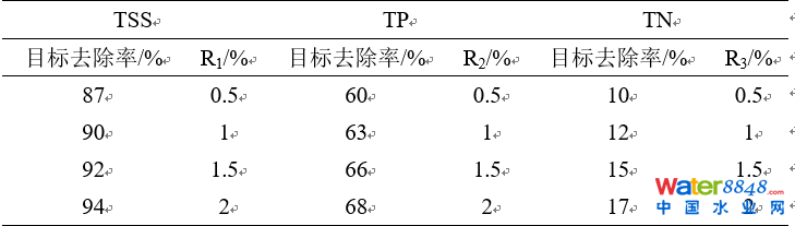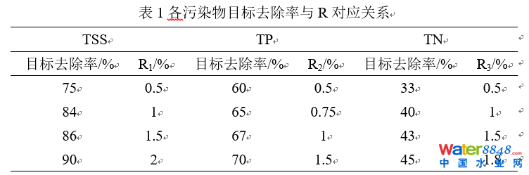 生物滯留池面積百分比由目標(biāo)污染物種類(TP、TN、有機(jī)物等)及其預(yù)期去除效率確定。