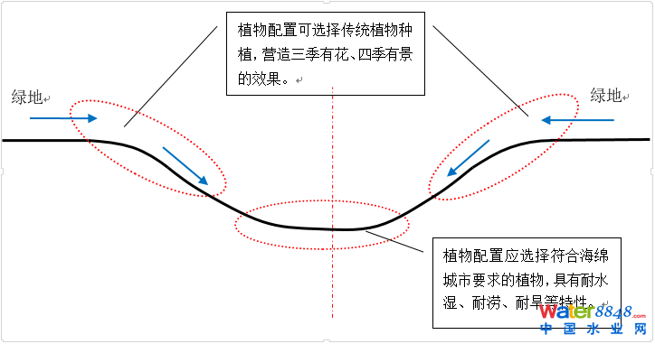 滲透型植草溝有滲透、滯蓄、凈化雨水徑流的作用,植物配置應(yīng)遵循以下原則: