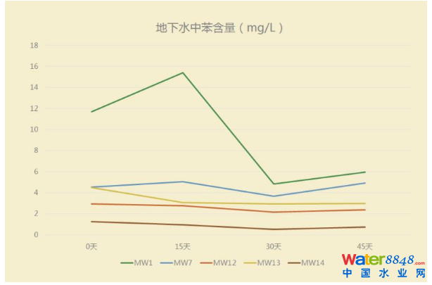 該修復(fù)項目場地原為焦化工廠污水處理區(qū),土壤與地下水均受到嚴(yán)重有機(jī)物污染,且因地層復(fù)雜、污染深度較深等因素,導(dǎo)致常規(guī)修復(fù)難度較大。GCW技術(shù)的應(yīng)用,使地下水污染物濃度在短期內(nèi)有了明顯下降,且具有良好的持續(xù)修復(fù)效果。值得一提的是,該項目最深修復(fù)深度達(dá)20米,修復(fù)難度極高。