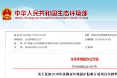 關于征集2019年度國家環(huán)境保護標準計劃項目承擔單位的通知各省、自治區(qū)、直轄市環(huán)境保護廳(局),新疆生產建設兵團環(huán)境保護局,部各直屬單位,各...