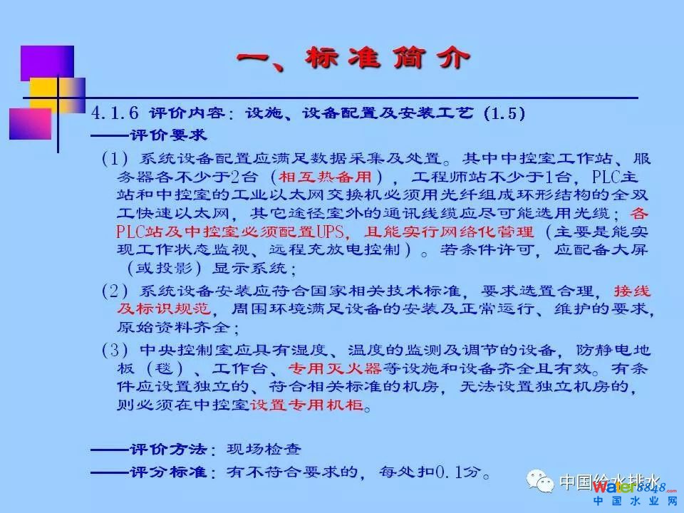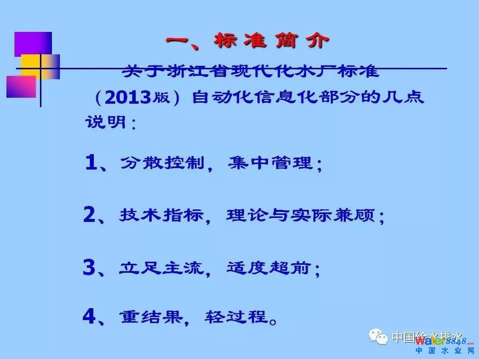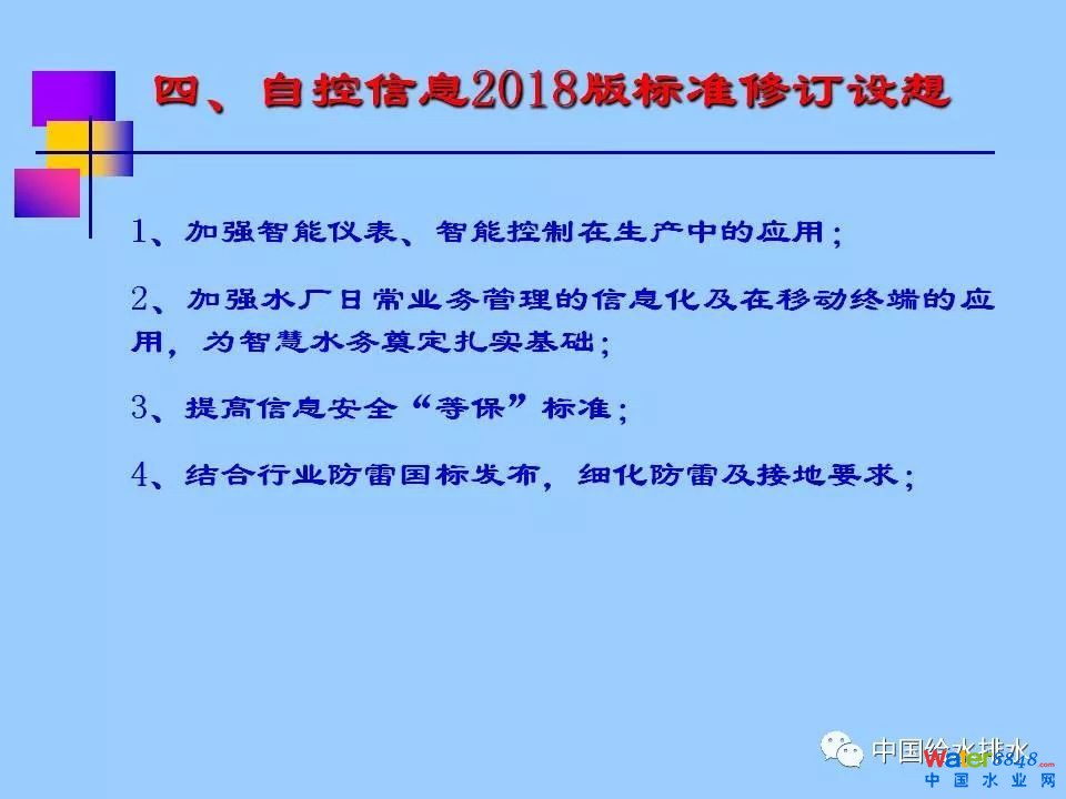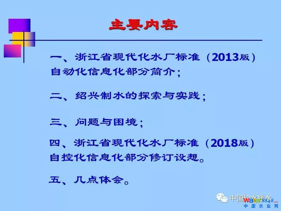 《浙江省城市供水現(xiàn)代化水廠評價標(biāo)準(zhǔn)》(2013版)涵蓋七大部分內(nèi)容:水質(zhì)、凈水工藝、電氣機(jī)械設(shè)備、自動化和信息化、科學(xué)管理、安全生產(chǎn)和水廠環(huán)境,共分為30多個評價類別、80多個評價項目、240多個評價點,評價總分為100分,其中,自動化和信息化占到20分。紹興市制水有限公司徐永燦副總經(jīng)理在報告中詳細(xì)介紹了“自動化和信息化”部分標(biāo)準(zhǔn)的具體評價內(nèi)容(評價要求、方法及評分標(biāo)準(zhǔn)),同時介紹了紹興制水有限公司建設(shè)現(xiàn)代化水廠的探索與實踐。
