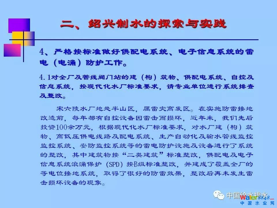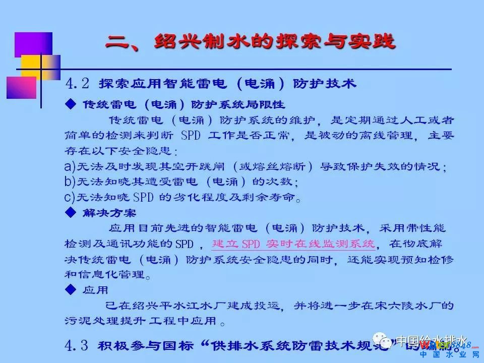 該公司還在平水江水廠應(yīng)用智能防雷技術(shù),實現(xiàn)了主要節(jié)點SPD的實時在線監(jiān)控。
