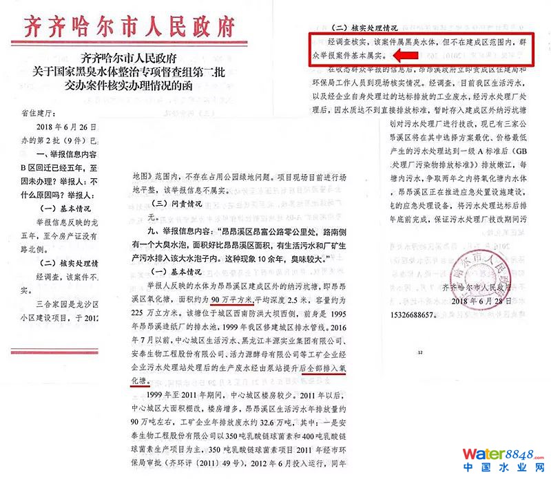6月23日,第三批城市黑臭水體整治環(huán)境保護(hù)專項(xiàng)行動(dòng)第31督查組接到群眾舉報(bào)稱,齊齊哈爾市昂昂溪區(qū)有一個(gè)存在10余年的巨大臭水泡。督查組立即將該舉報(bào)信息交辦給當(dāng)?shù)卣藢?shí),要求地方政府在5日內(nèi)向督查組反饋意見。幾天后,齊齊哈爾政府在交辦案件核實(shí)辦理情況報(bào)告中表示,“經(jīng)調(diào)查核實(shí),該案件屬黑臭水體,但不在建成區(qū)范圍內(nèi),群眾舉報(bào)案件基本屬實(shí)。”
