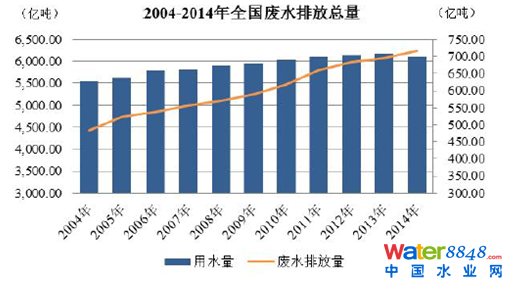 國(guó)家統(tǒng)計(jì)局?jǐn)?shù)據(jù)顯示,2004 至2014 年期間,全國(guó)的用水量由5,547.80 億噸增至6,094.86 億噸,增幅為9.86%,與此同時(shí),全國(guó)廢水排放總量由482.40 億噸增至716.18 億噸,增幅達(dá)到了48.46%。
