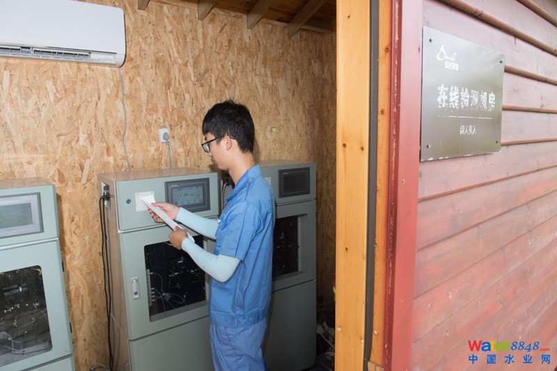 6月27日,運維員在德清縣五四村農(nóng)村生活污水處理站進行水質(zhì)在線檢測。