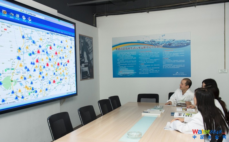 6月27日,運維員在德清農(nóng)村生活污水運維中心監(jiān)控各站點運行情況。