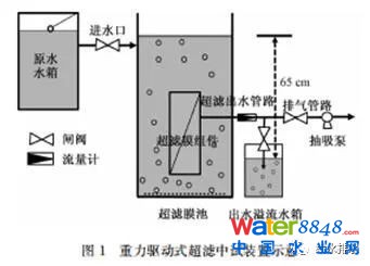 以超濾為核心的第三代凈水技術發(fā)展迅猛,國內越來越多的大型水廠(5萬~30萬m3/d)采用超濾工藝,并且超濾工藝亦應用于農村飲用水工程(50~500 m3/d)。伴隨著膜工業(yè)的高速發(fā)展,超濾膜的造價持續(xù)下降,使得低通量超濾工藝成為可能。基于以上特點,科研工作者開始關注以重力勢能為驅動力的低壓超濾技術。