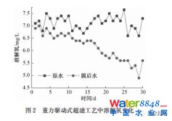 3.1重力驅動式超濾工藝溶解氧的變化