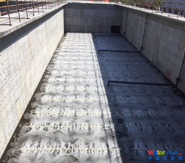 圖為寧波杭州灣污水廠生物反應(yīng)池通水現(xiàn)場