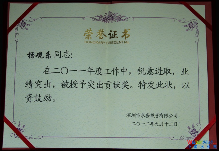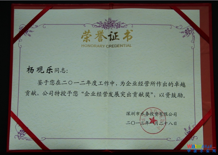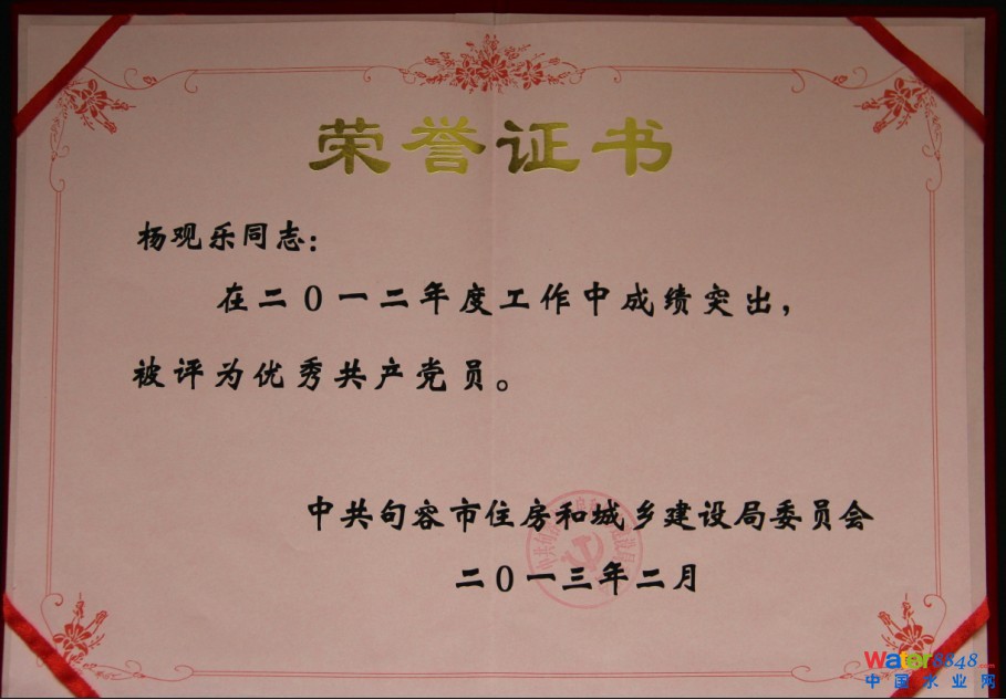 楊觀樂,男,1969年11月出生,廣東深圳人,中共黨員,畢業(yè)于哈爾濱工業(yè)大學(xué),給排水高級工程師,是全國最大的水務(wù)企業(yè)深圳水務(wù)集團員工,由于句容市政府與深圳水務(wù)集團進行了污水項目的BOT合作,2011年被外派至江蘇工作,目前擔任句容市深水水務(wù)、句容市深水黃梅、常州市深水城北、常州市深水江邊四家公司董事長職務(wù),并兼任黨支部書記。2012年3月份擔任句容市政協(xié)委員一年以來,積極收集社情民意,用外來投資者的視野向政協(xié)共提交了9個提案,內(nèi)容涉及句容市的生態(tài)、民生、文化、旅游等。由于工作積極主動,近兩年時間,帶領(lǐng)句容公司獲得了集團先進單位、個人也獲得集團先進生產(chǎn)工作者、2011年度突出貢獻獎、2012年度企業(yè)經(jīng)營發(fā)展突出貢獻獎,在句容,也獲得了鎮(zhèn)江市環(huán)保局減排先進個人、句容市住建局優(yōu)秀黨員稱號等。