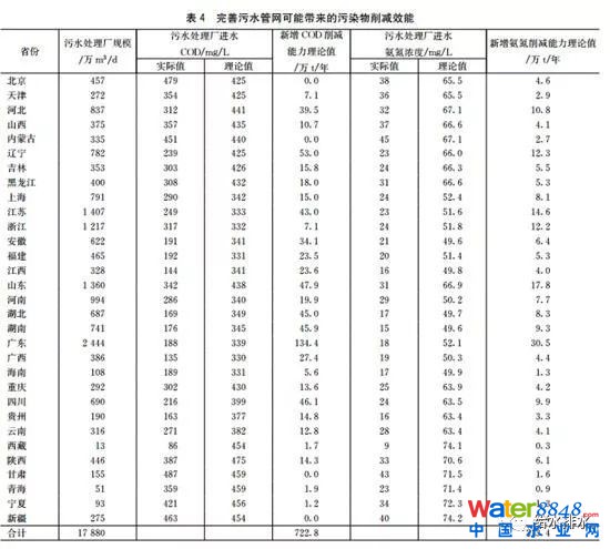 每省理論新增污染物削減能力=(進(jìn)水污染物濃度理論值-進(jìn)水污染物實際值)×該省城鎮(zhèn)污水處理規(guī)模(3)