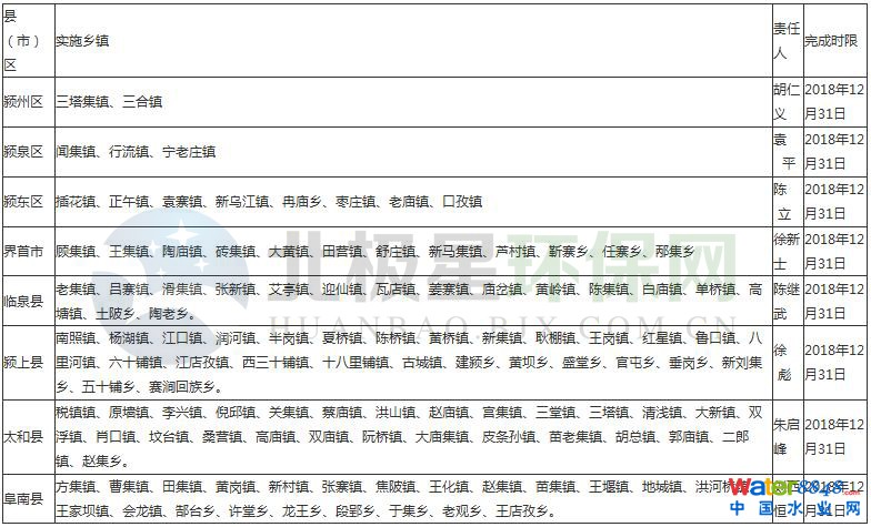 關(guān)于印發(fā)阜陽市2018年鄉(xiāng)鎮(zhèn)政府駐地生活污水治理實(shí)施方案的通知
