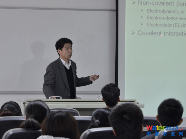 李曉巖教授1997年加入香港大學(xué),從事環(huán)境工程方面的教學(xué)與科研工作。李教授的研究領(lǐng)域包括廢水處理和飲用水處理等方面,是水環(huán)境中顆粒物遷移轉(zhuǎn)化行為研究和數(shù)值模擬方面的專家,曾分別于2008和2011年獲得國家自然基金和香港研究資助局的聯(lián)合資助。這次來到深研院,李教授帶來了題為“Research on Interface of Membrane Filtration”的學(xué)術(shù)報告。報告主要介紹了關(guān)于膜過濾技術(shù)方面的內(nèi)容,包括膜界面情況、膜表面顆粒物受力分析和膜污染處理方法。其中著重講述了關(guān)于膜表面材料處理的方法。
