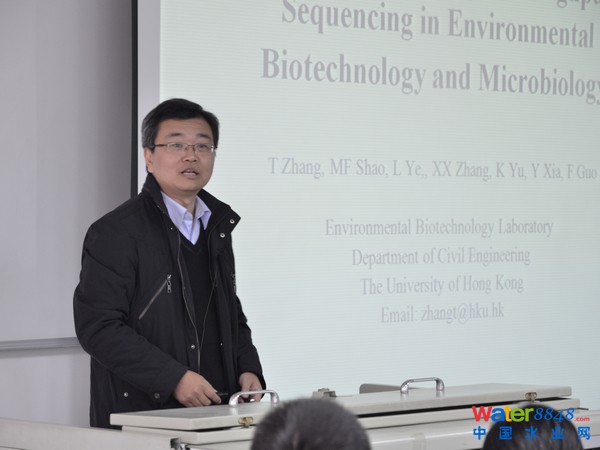張彤教授分別在南京大學(xué)和香港大學(xué)獲得碩士和博士學(xué)位。張教授的研究領(lǐng)域主要集中于基于分子方法的環(huán)境工程研究。他在技術(shù)手段上關(guān)注熒光原位雜交、穩(wěn)定同位素探針、宏基因組等方面,而在環(huán)境過程的研究主要為廢水中的氮磷去除、新型污染物的生物降解規(guī)律等方向。同時,張教授還出任德國施普林格出版社旗下《應(yīng)用微生物生物技術(shù)快報》期刊編委;谧约旱难芯,張彤教授為我們帶來題為“Application of High-throughput Sequencing in Environmental Biotechnology and Microbiology”的學(xué)術(shù)報告。在報告中,張教授用淺顯的比喻和輕松的語言,把高通量測序技術(shù)展現(xiàn)給我院師生。由于微生物技術(shù)在環(huán)境工程中應(yīng)用得越來越廣泛,研究微生物行為及其DNA序列就顯得尤為重要,這項技術(shù)將進一步推動環(huán)境學(xué)科的發(fā)展。
